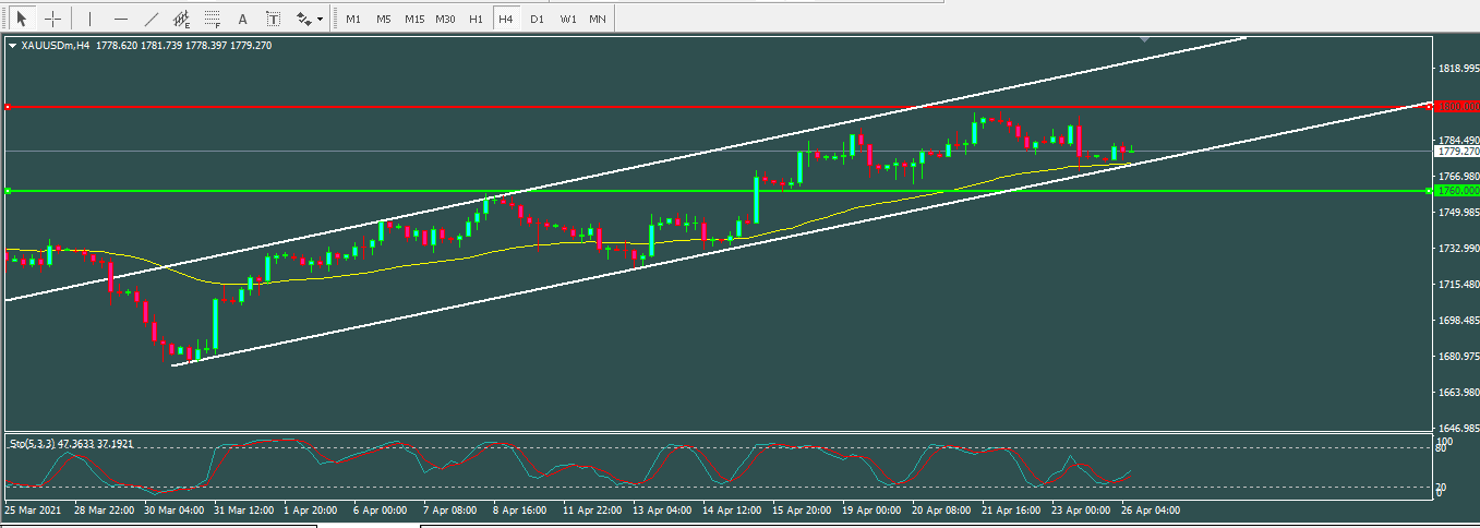คาดการณ์ราคาทองคำ – ราคาทองคำทดสอบแนวรับของช่อง – บทวิเคราะห์ – 26-04-2021