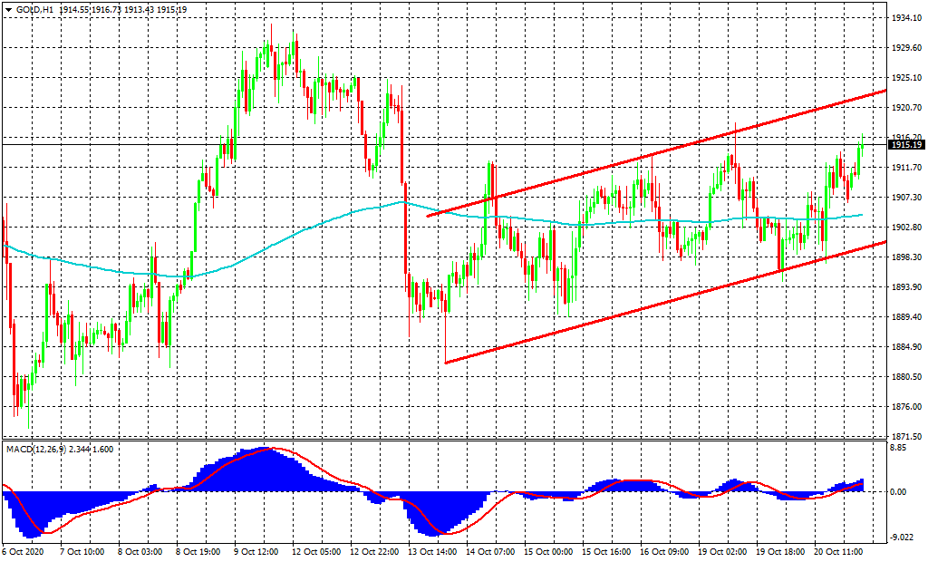ผลสรุปแผนเยียวยาโควิดสหรัฐฯ(ที่เป็นเครื่องมือการหาเสียงของสองพรรค)เลื่อนออกไป แต่ส่งสัญญาณน่าจะตกลงกันได้ก่อนการเลือกตั้งเร็วๆนี้ ทำให้ราคาทองและตลาดหุ้นยังเคลื่อนไหวเชิงบวก ประกอบกับข่าวว่าทาง EU กับอังกฤษชะลอการเจรจา NO DEAL BREXIT ออกไปอีกเช่นกัน ทำให้ความไม่แน่นอนยังปกคลุมตลาดและค่าเงินต่อไป วันนี้ไม่มีตัวเลขสำคัญแต่ประเด็นข่าวต่างๆยังทยอยออกมาเรื่อยๆยิ่งอยู่ในโค้งสุดท้ายของการเลือกตั้ง ทรัมป์ยังพยายามจะพลิกเกมมาเป็นผู้ชนะ ตลาดจึงเทรดเหวี่ยงแรงตามประเด็นข่าวต่างๆต่อไป ในทางเทคนิดราคาทองติดกับเทรดในกรอบ $ 1890-1920 มาหลายวันทำการ ยังรอการ BREAKOUT จากกรอบต่อไป
