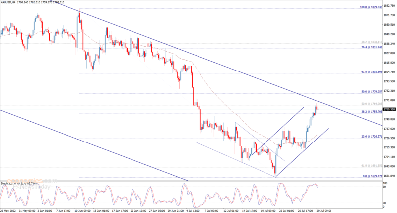 ราคาทองคำปรับตัวสูงขึ้นอย่างต่อเนื่องเพื่อเข้าใกล้จากเป้าหมายเชิงบวกเริ่มต้นของเราที่ 1770.00 ชี้ให้เห็นว่าการละเมิดระดับนี้จะผลักดันราคาไปที่ระดับ 1779.25 โดยตรง โดยตระหนักว่าการต่อเนื่องของคลื่นรั้นต้องอยู่เหนือระดับ 1755.70