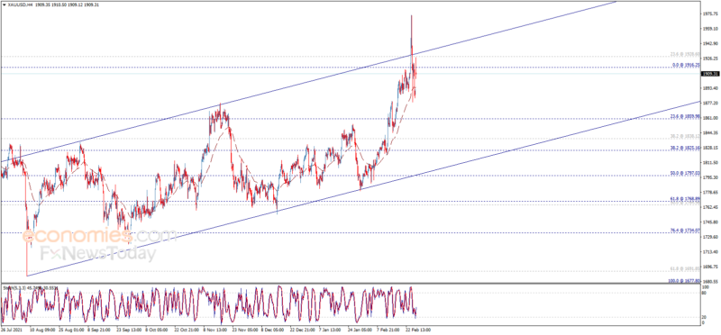 ราคาทองคำเริ่มต้นวันนี้โดยมีช่องว่างระหว่างขาขึ้นในการซื้อขายที่ 1927.00 แต่กลับมาทำการซื้อขายในเชิงลบเพื่อยุติลงที่ต่ำกว่า 1916.25 เพื่อให้สถานการณ์แนวโน้มขาลงยังคงดำเนินต่อไปในช่วงเวลาที่จะมาถึง ซึ่งตั้งเป้าไว้ที่ 1860.00 เป็นหลัก