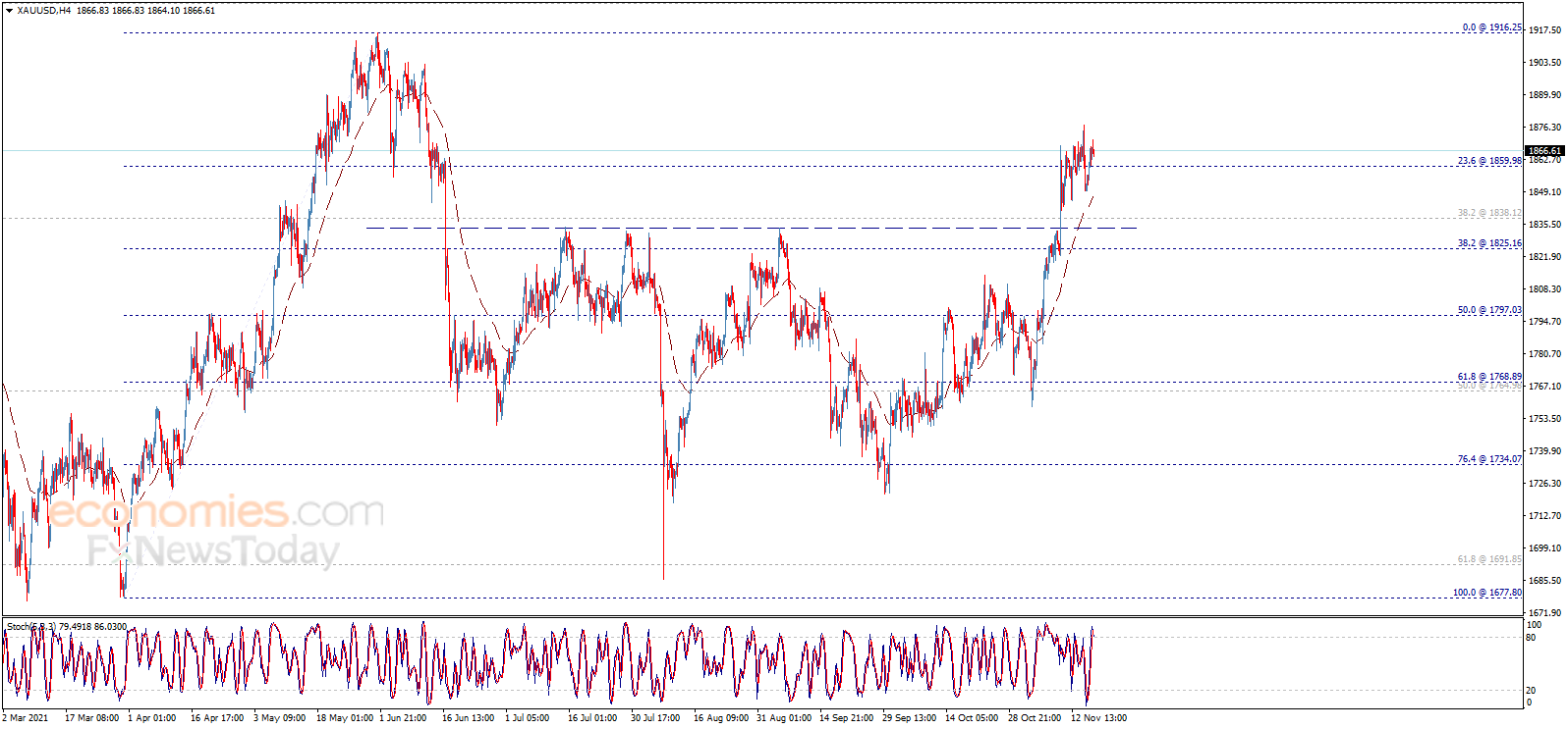 การปฏิเสธในปัจจุบันโดยสุ่มอาจทำให้เกิดความผันผวนด้านข้างก่อนที่จะกลับมาดำเนินการซื้อขายที่เป็นบวกที่รอ โดยสังเกตว่าการทะลุ 1860.00 และต่ำกว่าจะกดราคาให้ลดลงตามเกณฑ์ระหว่างวันและบรรลุการปรับฐานขาลงก่อนที่จะกลับขึ้นอีกครั้ง