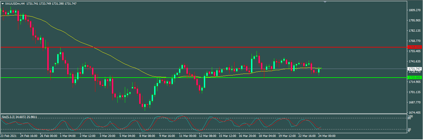 กรอบการซื้อขายที่คาดไว้สำหรับวันนี้อยู่ระหว่างแนวรับ 1720.00 และแนวต้าน 1760.00