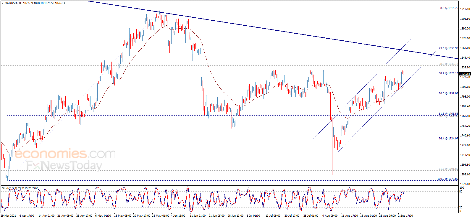 ราคาทองคำยืนยันการฝ่าฝืนระดับ 1825.15 หลังจากปิดเมื่อวันศุกร์ที่ด้านบนซึ่งสนับสนุนความต่อเนื่องของสถานการณ์แนวโน้มขาขึ้นอย่างมีประสิทธิภาพในช่วงที่จะเกิดขึ้น ซึ่งจัดอยู่ในช่อง bullish ที่ปรากฏบนแผนภูมิรอที่จะมุ่งหน้าไปยัง 1860.00 ซึ่งแสดงถึงเป้าหมายต่อไปของเรา