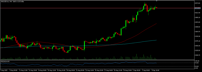 กราฟทองคำราย 4 ชั่วโมง แสดงให้เห็นถึงการสร้างฐานที่แข็งแรงบริเวณโซน 3530–3540 ดอลลาร์ โดยมีสัญญาณจาก RSI ที่ยังคงอยู่ในโซนบวก และเส้นค่าเฉลี่ย EMA 50 วัน ตัดขึ้นเหนือ EMA 200 วัน ซึ่งเป็นสัญญาณเชิงบวก (Golden Cross)