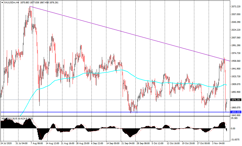 ไฟเซอร์และ BioN TECH คิดค้นวัคซีนโควิดได้ผลเกิน 90% สร้างความหวังเศรษฐกิจโลกฟื้น ดันตลาดหุ้น ทุบทองร่วงร้อยเหรียญคืนเดียว ภาพรวมทองน่าจะถูกกดดันจากข่าวนี้สักพักก่อนฟื้นตัวกลับมาระยะกลาง เพราะนโยบายผู้นำคนใหม่ไบเดนจะใช้เงินมหาศาลกระตุ้นเศรษฐกิจสหรัฐฯจนกว่าจะฟื้นตัวอย่างแข็งแรง ทางเทคนิคระยะสั้นๆจับตาทองยืน $1850 ได้ไหม หลุด $1850 แรงๆลงไปจะทำให้ต้องเสียเวลาการพักฐานใหญ่ แนวต้านสำคัญ $1880-90 ไม่ผ่านถือว่าแย่เช่นกัน อย่างไรก็ตามวัคซีนยังพัฒนาไม่ 100% ยังมีข้อกังขา และระวังความผันผวนจากประเด็นทรัมป์ฟ้องศาลหวังพลิกเกมชนะ ถ้าศาลใน 6 รัฐที่มีปัญหาประทับรับฟ้องว่าคดีการโกงเลือกตั้งมีมูล