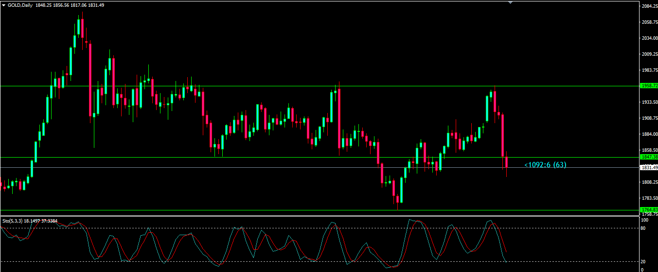 กลยุทธ์ : คนติดดอยหรือฝั่งซื้อ ถ้าราคารีบาวด์ให้คัทปรับพอร์ตให้ปลอดภัย / คนพอร์ตว่างคิดจะซื้อลงทุนให้รอทยอยซื้อโซนล่างแถว $1800-25 / คนคิดจะเล่นชอตให้รอรีบาวด์ จับตาแนว $1880 ถ้ามาถึงแสดงว่าทองอาจจะพลิกขึ้น / จับตาค่าเงินบาทหลังพยายามยืน 30 อาจจะอ่อนค่าบ้าง ต้านสำคัญ 30.25