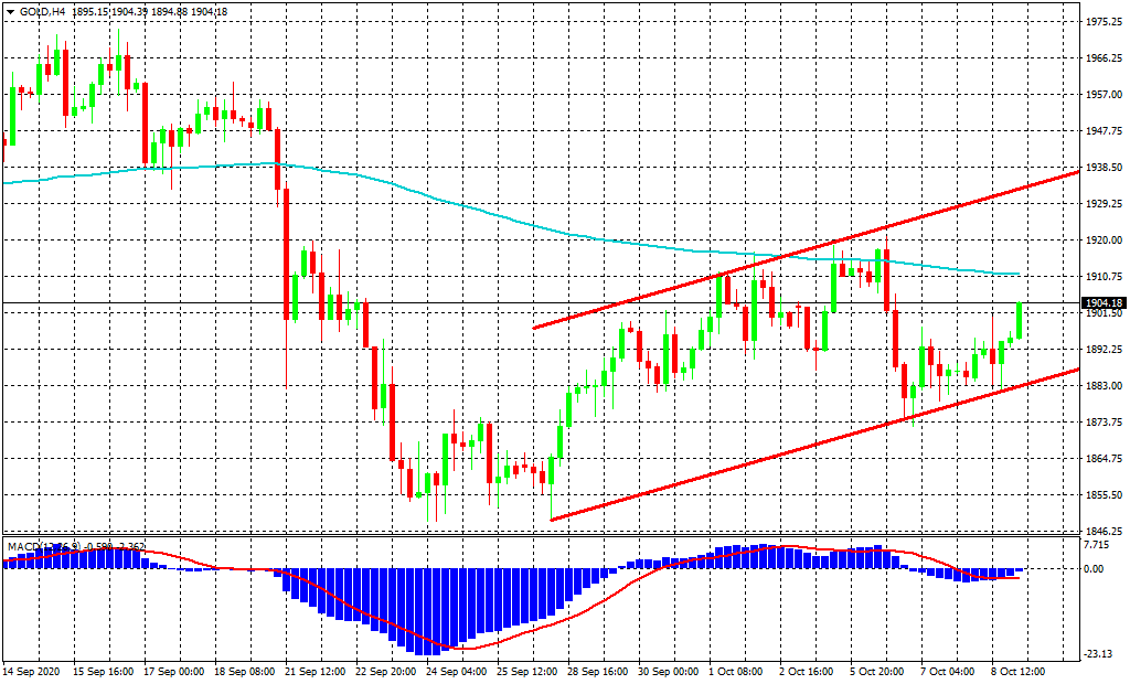 ทองผันผวนเล็กน้อยก่อนดีดตัวเหนือ $1900 เช้านี้หลังข่าวทรัมป์พยายามจะผลักดันมาตราการเยียวยาโควิดผ่านสภาอีกวาระ ภาพรวมราคาทองเคลื่อนไหวตามกระแสข่าวจากฝั่งสหรัฐฯ ทางเทคนิคก็เป็นการสู้กันตรงโซนต้าน $1900-20 และ แนวรับก็เป็นโซน $1880-1900 จนกว่าจะมีปัจจัยข่าวอะไรที่พาการทะลุผ่านแนวต้านแนวรับดังกล่าว ซึ่งตอนนี้มีลุ้นน่าจะเป็นข่าวการผ่านสภาของมาตราการเยียวยา และวัคซีนรักษาโควิดที่ทรัมป์น่าจะเอามาเป็นเครื่องมือชนะการเลือกตั้งตัวเอง การลงทุนราคาทองช่วงโค้งสุดท้ายของการเลือกตั้งถ้าวางแผนดีๆน่าจะได้ผลตอบแทนจากความแกว่งตัวแรงในอีกหนึ่งเดือนข้างหน้าจากนี้