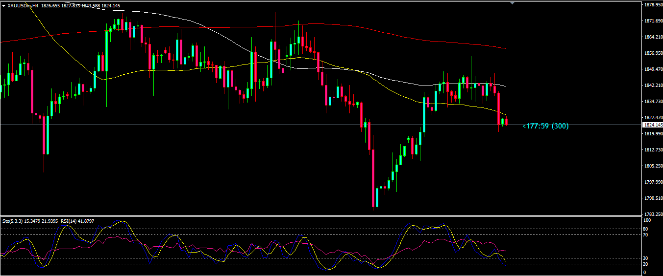 ราคาทองคำทะลุระดับ 1830.00 อย่างมีนัยยะสำคัญและพยายามที่จะถือต่ำกว่านั้นเพื่อแสดงถึงการมีแนวโน้มสถานการณ์เชิงลบอีกครั้ง เพื่อบรรลุเป้าหมายเชิงลบที่เริ่มต้นที่ 1800.00 และอาจลงไปถึง 1765.00 เป็นเป้าหมายถัดไป โดยสังเกตว่าราคาต้องปิดต่ำกว่า 1830.00 ทุกวัน เพื่อยืนยันความต่อเนื่องของการลดลงที่อาจเกิดขึ้นในเวลาต่อจากนี้