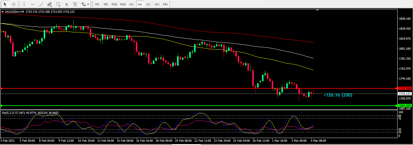 กรอบการซื้อขายที่คาดไว้สำหรับวันนี้อยู่ระหว่างแนวรับ 1692.00 และแนวต้าน 1725.00