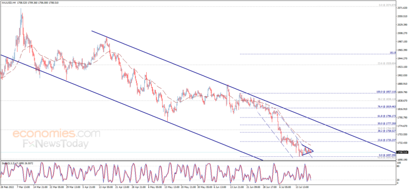 ราคาทองคำเริ่มกดดันแนวรับของธงขาลง ตอกย้ำความคาดหมายของแนวโน้มขาลงต่อไปในช่วงเวลาที่เหลือของวัน ซึ่งตั้งเป้าทะลุ 1700.00 เพื่อไต่ระดับไปยังสถานีถัดไปของเราที่แตะ 1650.00 เตือนคุณว่าความต่อเนื่องของแนวโน้มขาลงที่คาดการณ์ไว้ เวฟขึ้นอยู่กับเสถียรภาพราคาที่ต่ำกว่า 1715.00