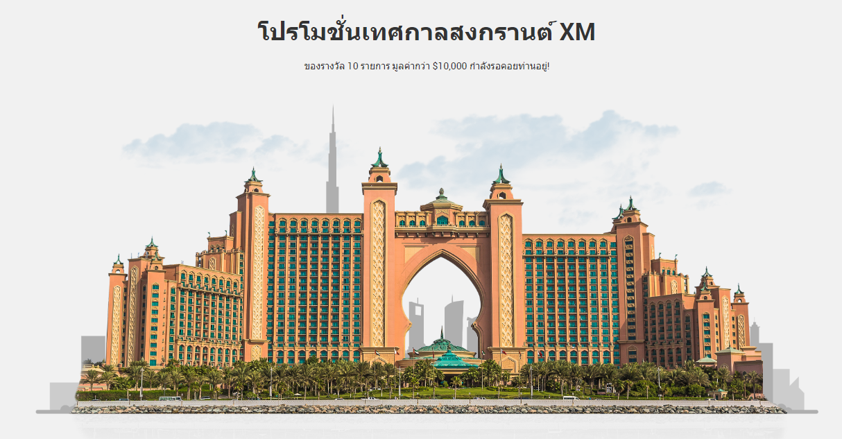 มาเข้าร่วมโปรโมชั่นของเราในตอนนี้และเข้าร่วมลุ้นในการจับรางวัลของ XM ที่มีของรางวัลมูลค่าสูงหลายรายการ โดยมีรางวัลใหญ่คือ: ที่พัก 4 คืน สำหรับ 2 ท่าน ที่โรงแรมสุดหรู Atlantis – The Palm Hotel ในดูไบ ท่านเพียงแค่มีบัญชีจริงของ XM และทำการเทรดฟอเร็กซ์ ทองคำ หรือเงินในช่วงระยะเวลาโปรโมชั่นนี้เพียงเท่านั้น