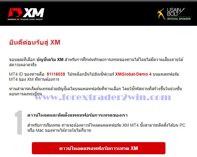 ทางโบรกเกอร์ XM จะแจ้งรายละเอียดหมายเลขบัญชีเทรดมาทางอีเมล์อีกฉบับเพื่อแจ้งให้ทราบว่าการเปิดบัญชีเสร็จสมบูรณ์