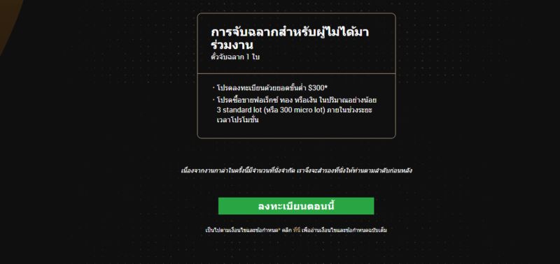 -ทำการซื้อขายฟอเร็กซ์, ทองคำ และเงิน ขั้นต่ำ 3 standard lots หรือ 300 micro lots ภายในช่วงระยะเวลาโปรโมชั่นตั้งแต่วันที่ 21 กันยายน – 24 ตุลาคม 2565